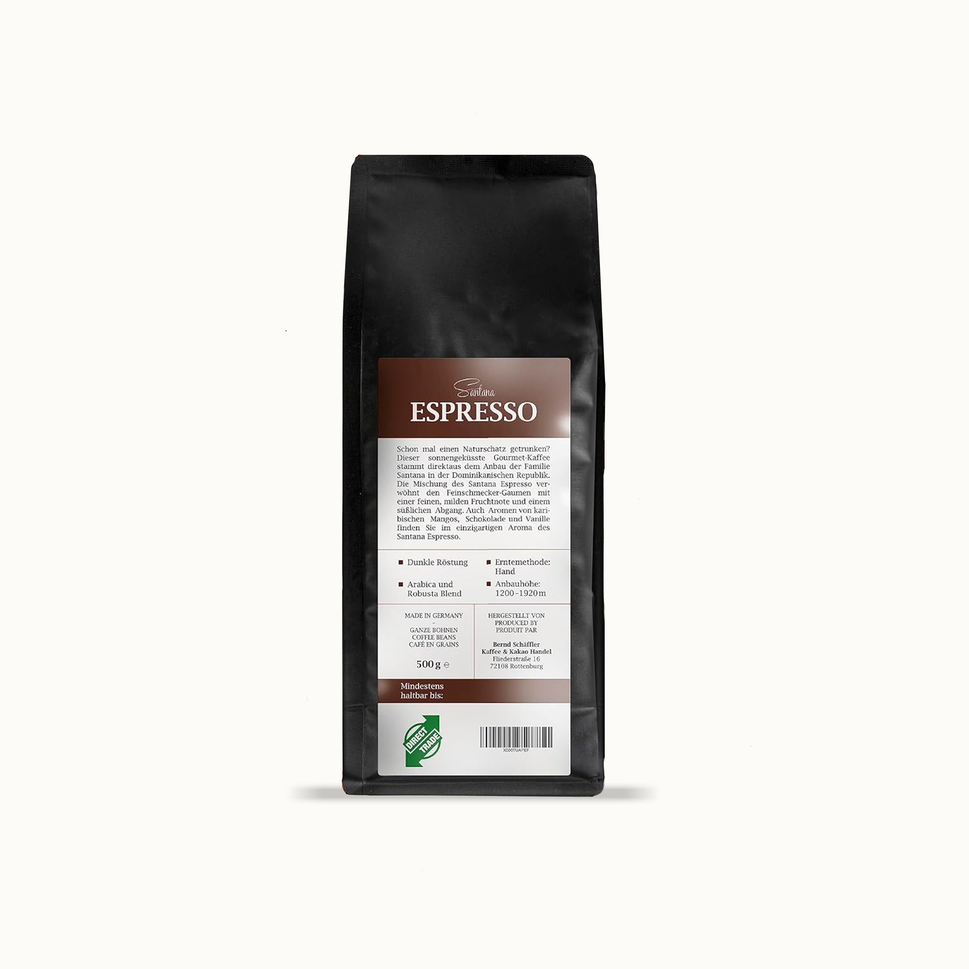 Genuss in Perfektion: Mit Santana Espresso erlebst du einen kräftigen, vollmundigen Kaffee, der Körper und Seele gleichermaßen belebt. Für diese Komposition werden ausgewählte Arabica- und Robusta-Bohnen aus nachhaltigem Anbau sorgfältig handverlesen und anschließend schonend in kleinen Chargen geröstet – für ein intensives Aroma und eine samtige Crema.